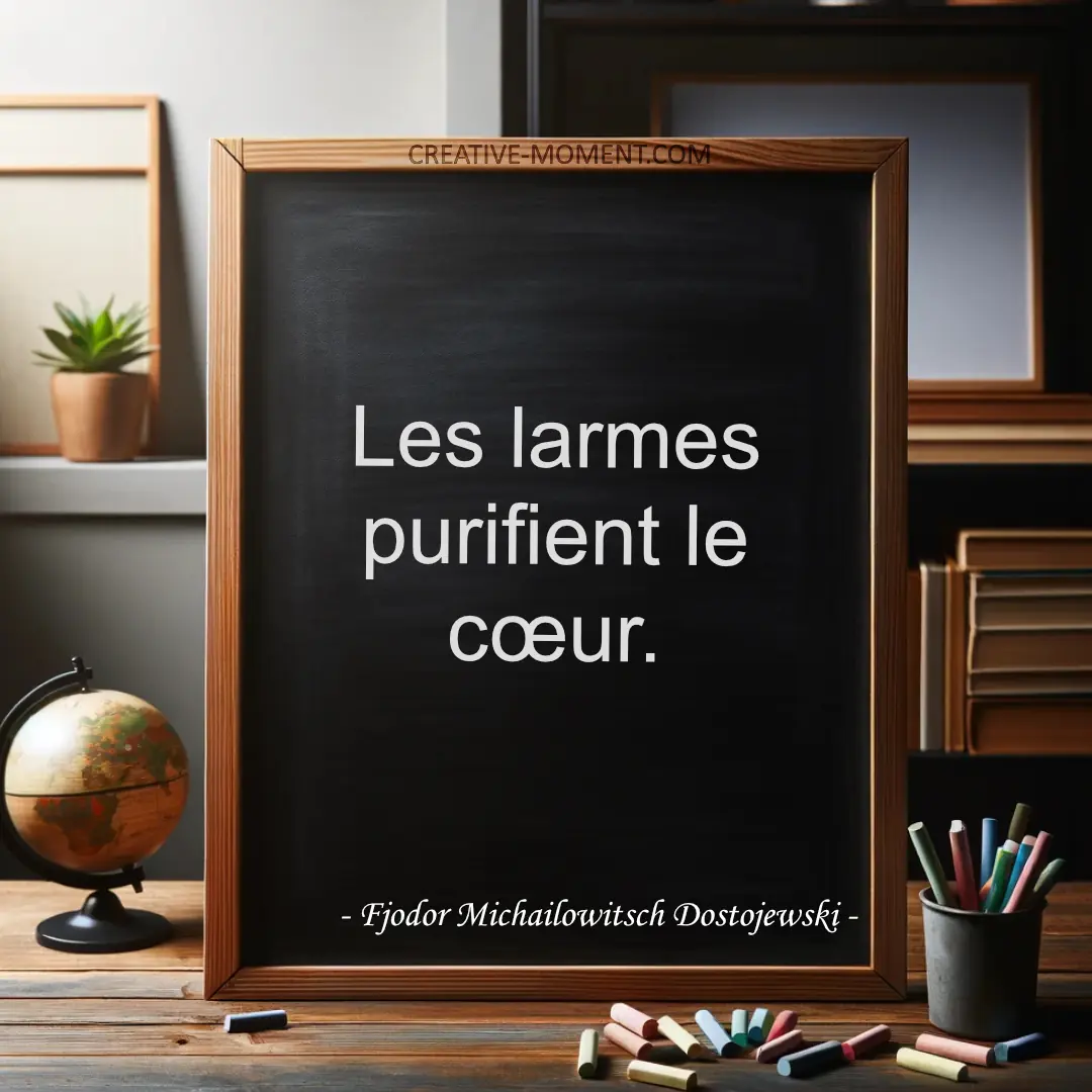 Les larmes purifient le cœur. Cette célèbre citation provient de l’écrivain russe Fiodor Dostoïevski et illustre clairement l'effet purificateur du chagrin émotionnel. Elle symbolise comment les larmes peuvent soulager et clarifier intérieurement.