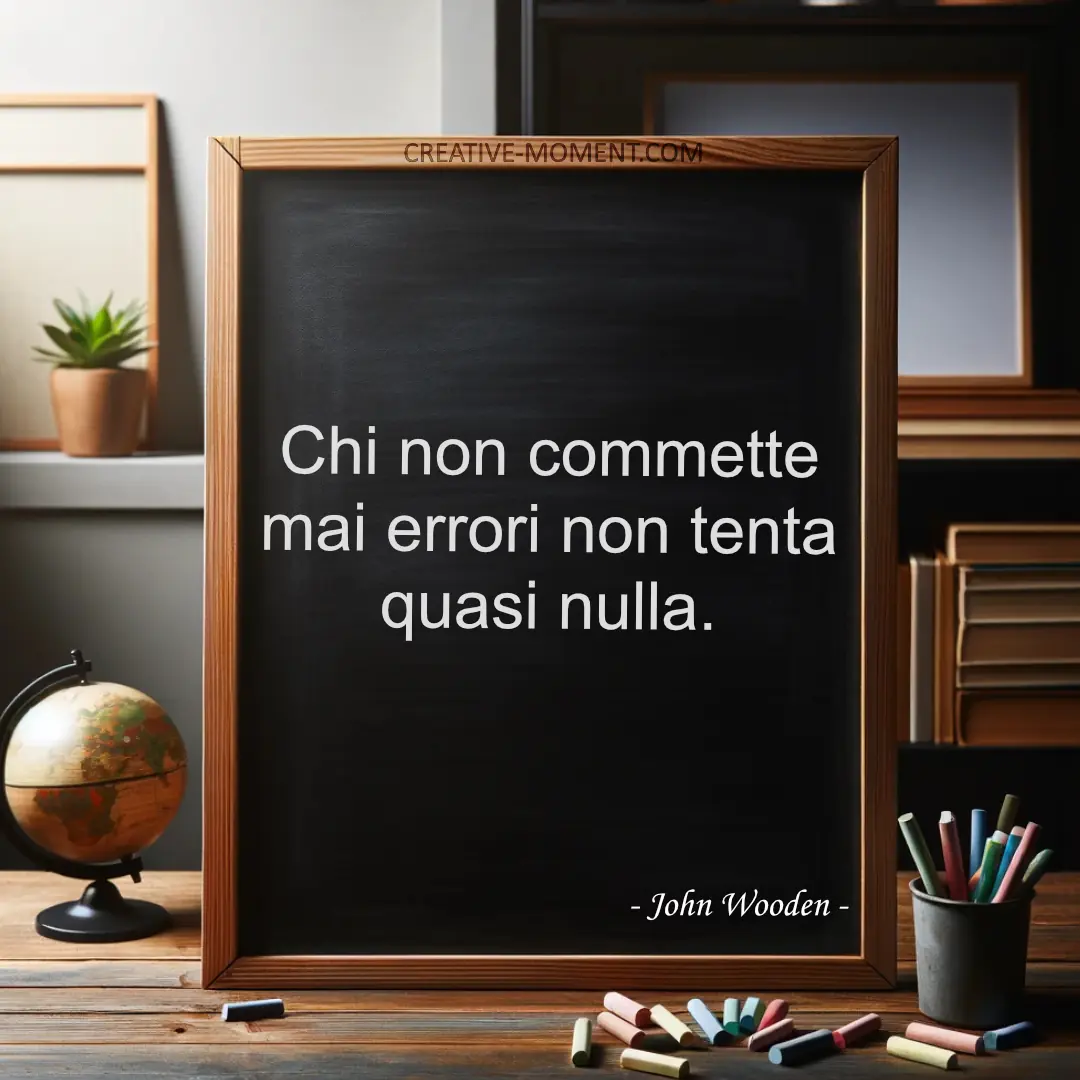 La citazione «Chi non commette mai errori non tenta quasi nulla.» è attribuita al leggendario allenatore di basket John Wooden. Questa affermazione sottolinea chiaramente che l’assenza di errori è spesso legata all’inattività. La frase è molto conosciuta e viene frequentemente utilizzata in contesti di leadership, coraggio, apprendimento e crescita personale.